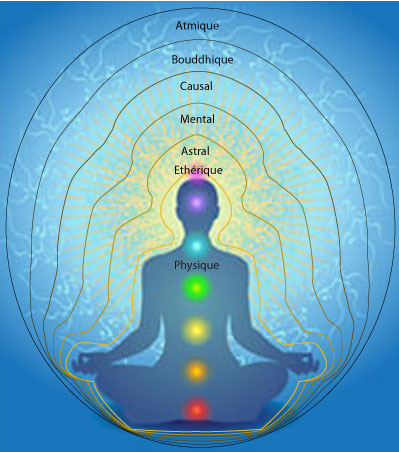 Nous possédons une enveloppe énergétique constituée de 7 corps subtils qui sont imbriqués et se chevauchent les uns dans les autres. L’aura est composée de ces corps énergétiques qui vibrent à leur propre fréquence, le corps physique étant celui qui possède les vibrations les plus basses. Plus les corps suivants sont éloignés du corps physique…
